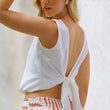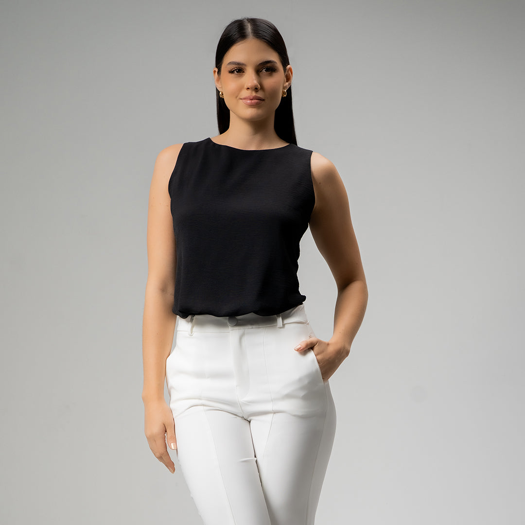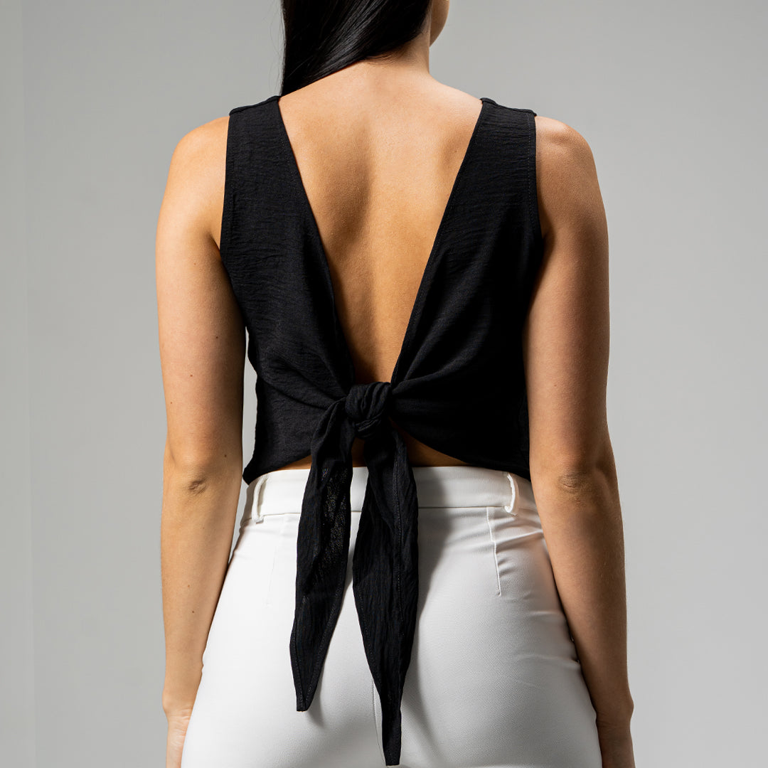Camisa englobada en crepe compuesto de anudar en la espalda.